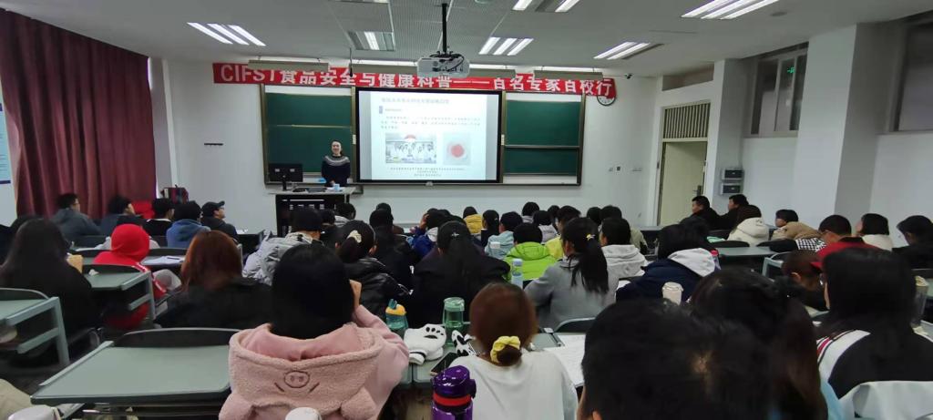 在本科生專場,易俊潔通過中國食品科學(xué)技術(shù)學(xué)會“雙百行動”啟動會視頻《食安健康,我們同行》,讓同學(xué)們進一步了解科學(xué)普及、科技創(chuàng)新對提高國家軟實力及人民生活水平的重要意義。講座中,易俊潔以科學(xué)普及和科技創(chuàng)新對社會發(fā)展的驅(qū)動作用為切入點,深入淺出的為同學(xué)們講述了我國食品工業(yè)現(xiàn)狀、未來食品面臨的挑戰(zhàn)及科技發(fā)展戰(zhàn)略趨勢,以科普的形式強化了學(xué)生們的安全和健康意識,用科學(xué)方法探求事實真相的思維習(xí)慣,促進了學(xué)校食品安全健康教育的提升。